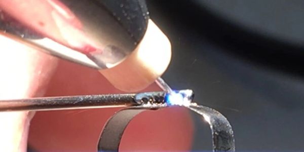 This process uses pin point electricity and a microscope to melt two metals together permanently. The act of welding gives off a bright, quick flash of light along with sparks.